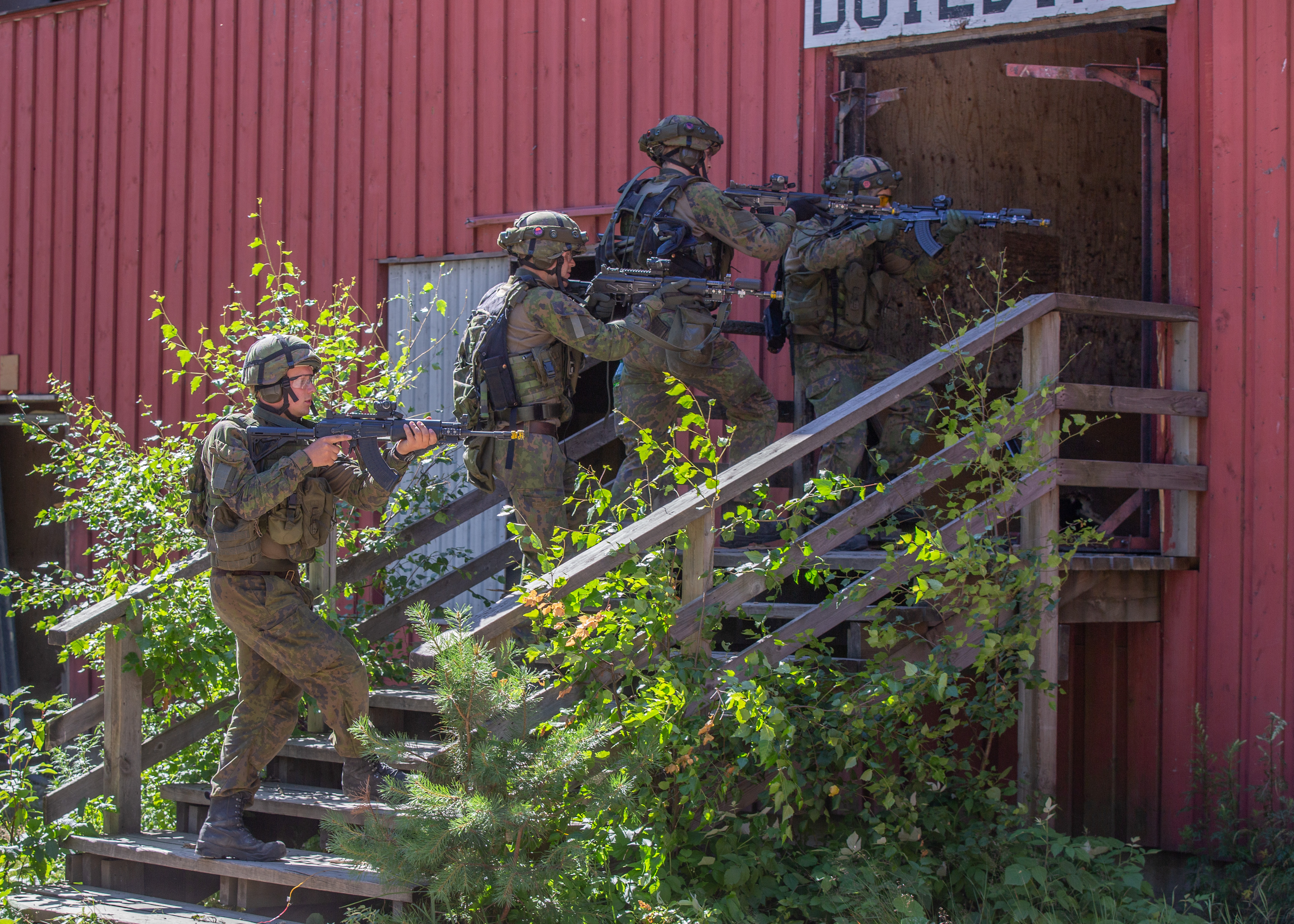 "During the first week of deployment to Finland, C Company 2 RIFLES were partnered with the Karelia Brigade. The week started with stands to demonstrate our capabilities as a precursor for later joint-training and exercises. Training then focused around developing a shared understanding of each sides’ urban drills and woodland warfare Tactic Techniques Procedures (TTPs). All of the rifle platoons and attachments were partnered with their counterparts and worked up from fire-team to platoon-level actions. This culminated in joint platoon attacks by the end of the week".