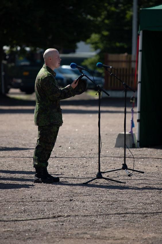 Kuvassa sotilaspastori Juuso Sikiö pitämässä alokkaille valahartautta Haminassa 8.8.2020.