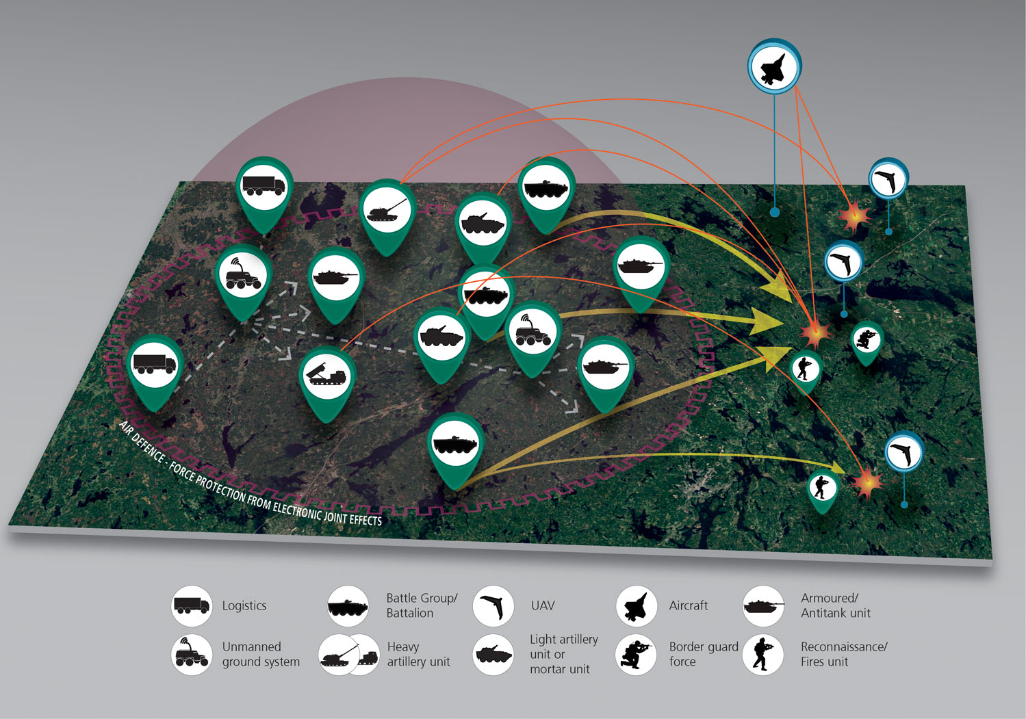 The Force 2035 must have in its immediate utilization access to the key capabilities of all the service branches. Yet, the supporting of the striking capability needs to be realizable by employing new procedures. This asks for concentrating the resources for supporting the combat by a striking echelon while simultaneously delivering joint effects in the front of the formation in order to support the elements of reconnaissance and fires and to surveil the rear and the flanks.