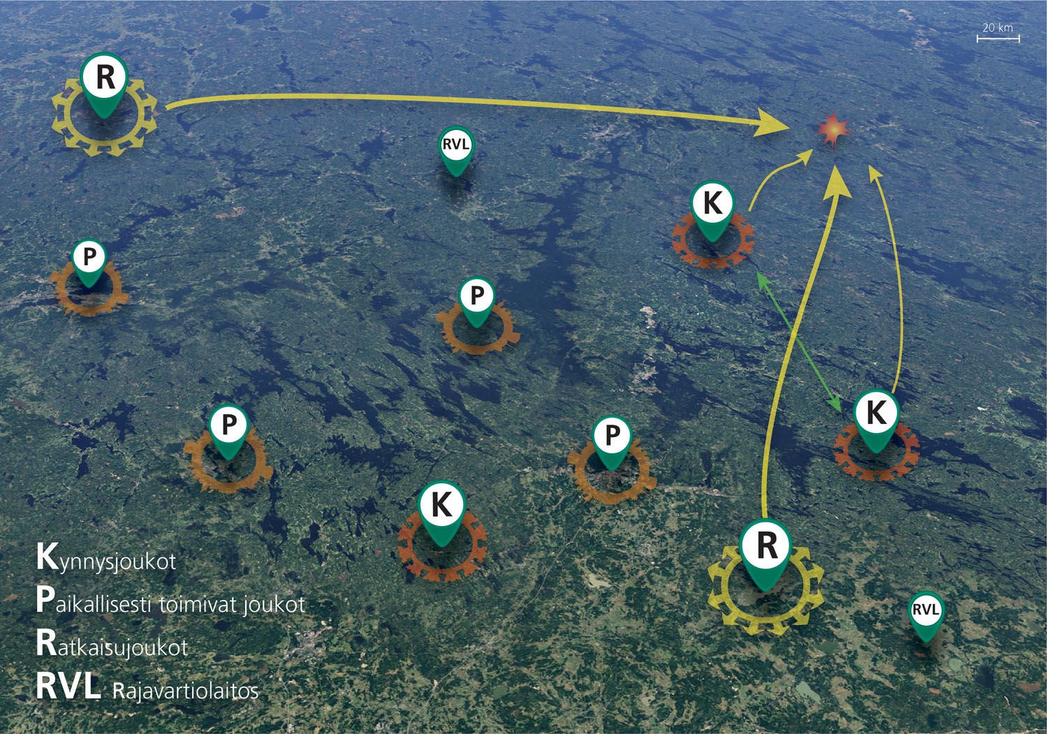 Paikallisesti toimivia joukkoja kehitetään ja varustetaan nykyistä taistelukykyisemmiksi ja itsenäisemmiksi, jolloin ne kykenevät estämään vastustajan operaatiot paikallisesti. Paikallisesti toimivien joukkojen voimavarana on oman toiminta-alueen vankka tuntemus sekä tehtävän mukaan räätälöity koulutus ja varustus.