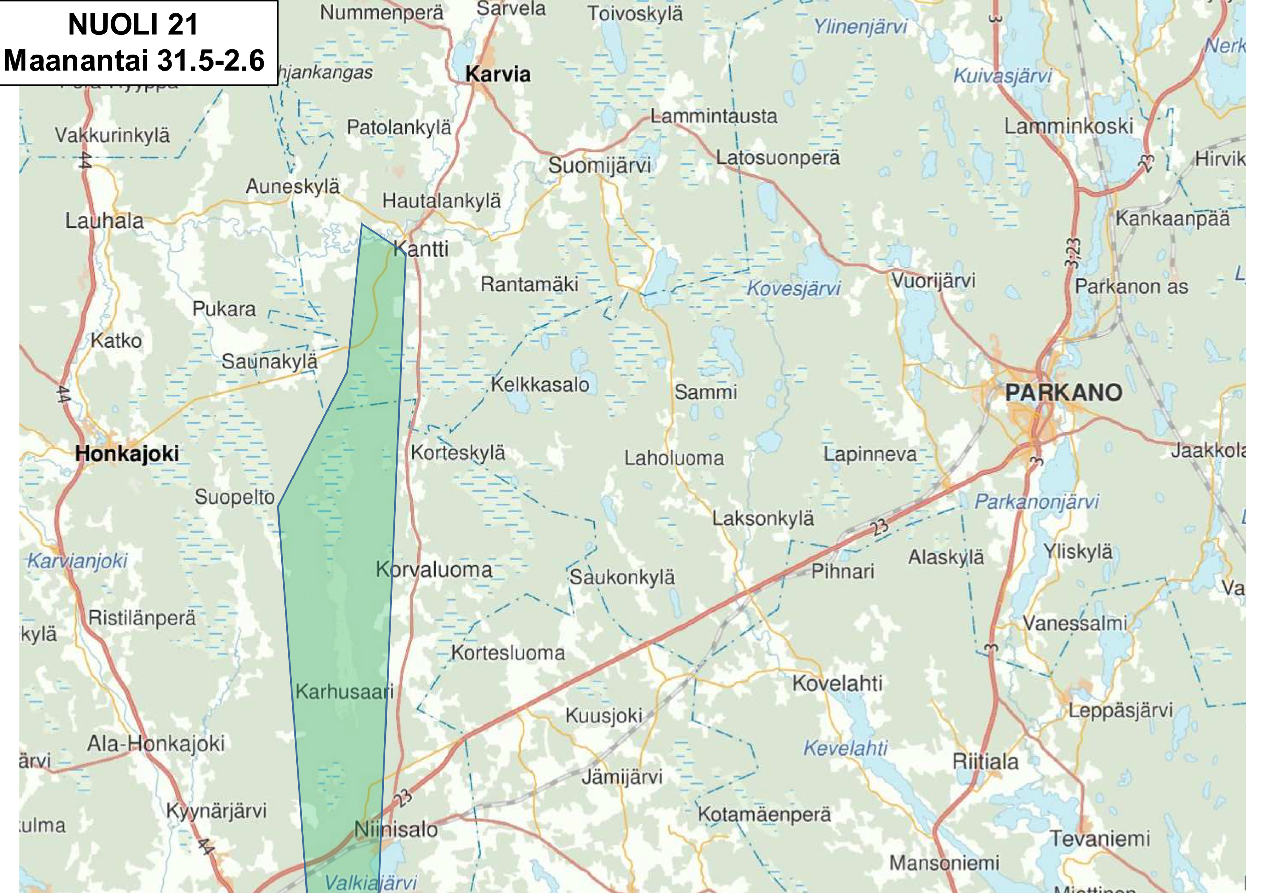 Nuoli 21 -harjoitus järjestetään 27.5. - 2.6.2021 Pohjankankaan ampuma- ja harjoitusalueella Niinisalossa. Harjoitusjoukot liikkuvat myös Kankaanpään, Parkanon, Jämijärven sekä Karvian alueella.