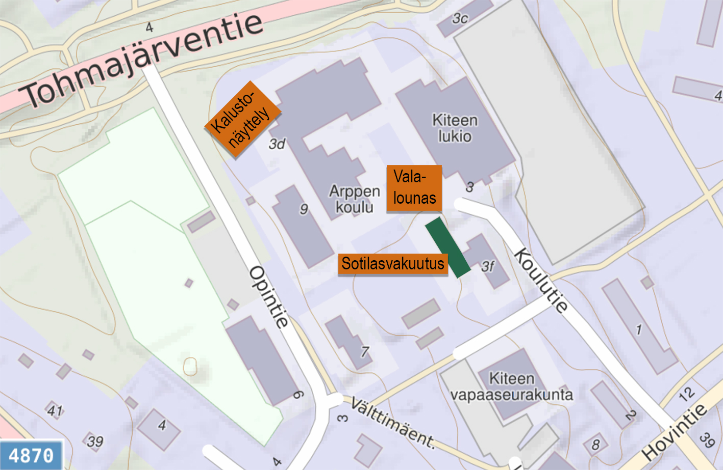 Valatapahtumat koulukeskuksella, Arppen koulu (klikkaamalla suurennat karttaa):