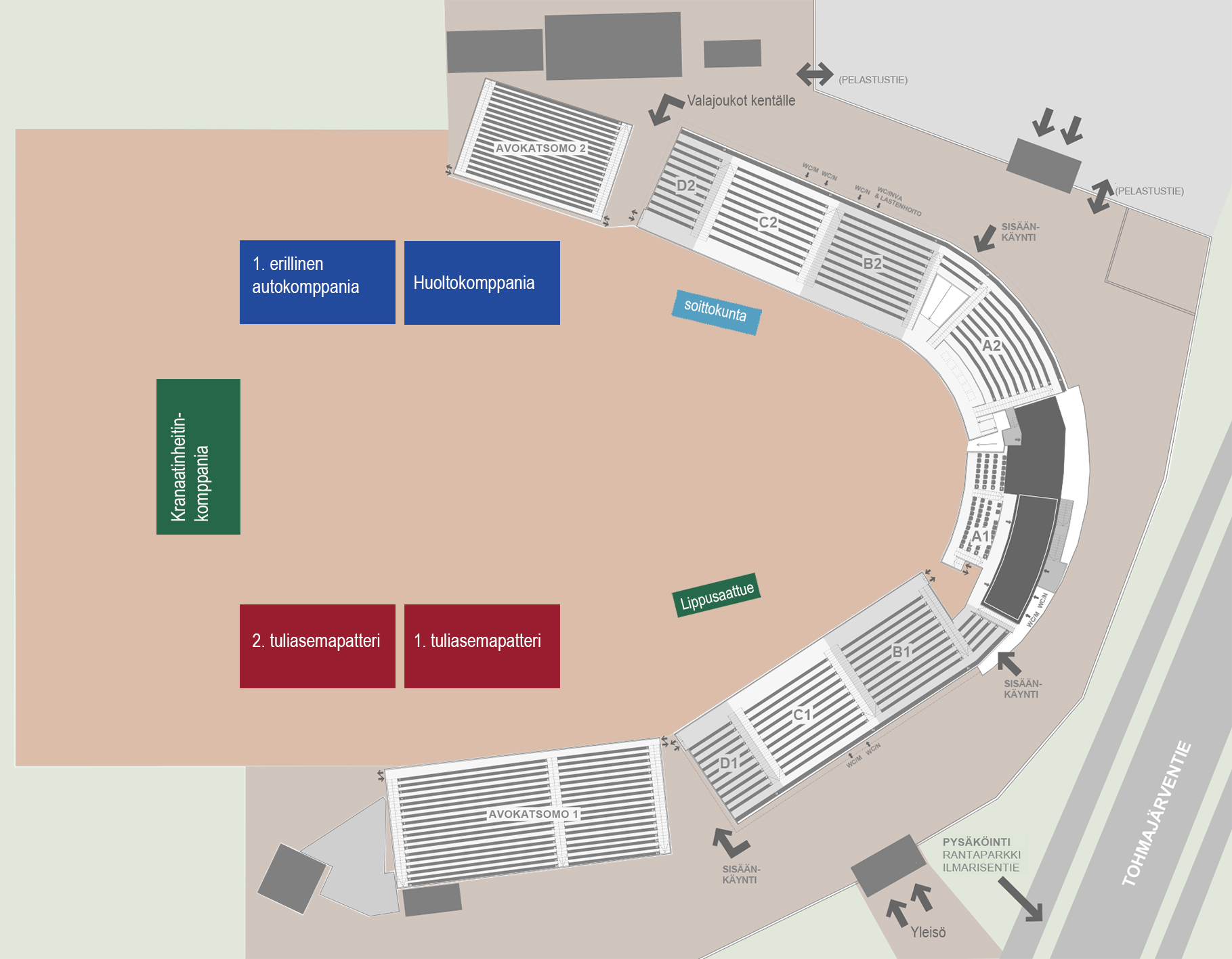 Tilaisuudet Kiteellä ovat sotilasvakuutusta lukuun ottamatta ulkotilaisuuksia, joten kannattaa varautua sään mukaisella vaatetuksella ja mukavilla jalkineilla. Valakenttä on Kiteen pesäpallokenttä, jossa on ulkoistumakatsomot 4500 vieraalle.